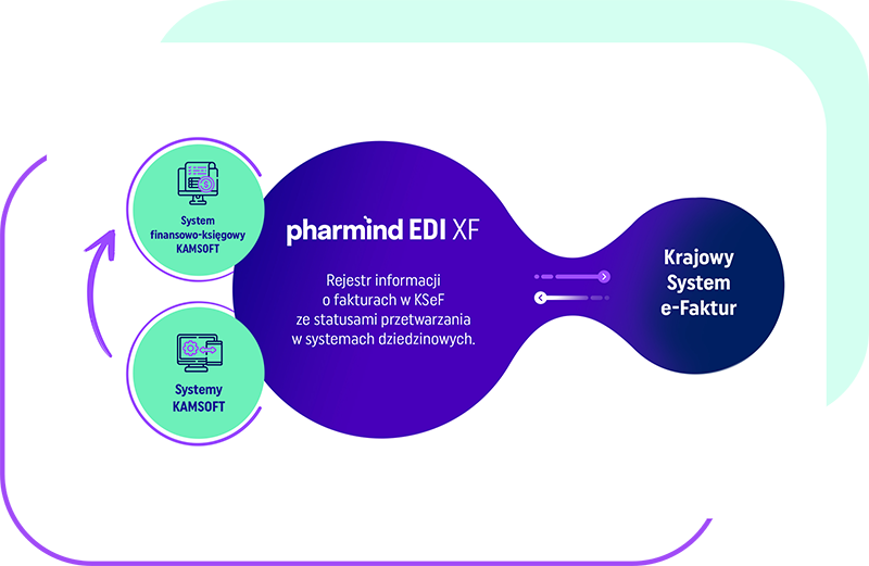 KAMSOFT jest producentem i dostawcą rozwiązania pharmind XF. pharmind XF jest platformą pozwalającą na wymianę różnych dokumentów pomiędzy różnymi uczestnikami rynku ochrony zdrowia. Dostosowaliśmy tę platformę do komunikacji z KSeF tworząc rozwiązanie pharmind XF, które dodatkowo głęboko zintegrowaliśmy z innymi systemami KAMSOFT, z których korzystają m.in.. :